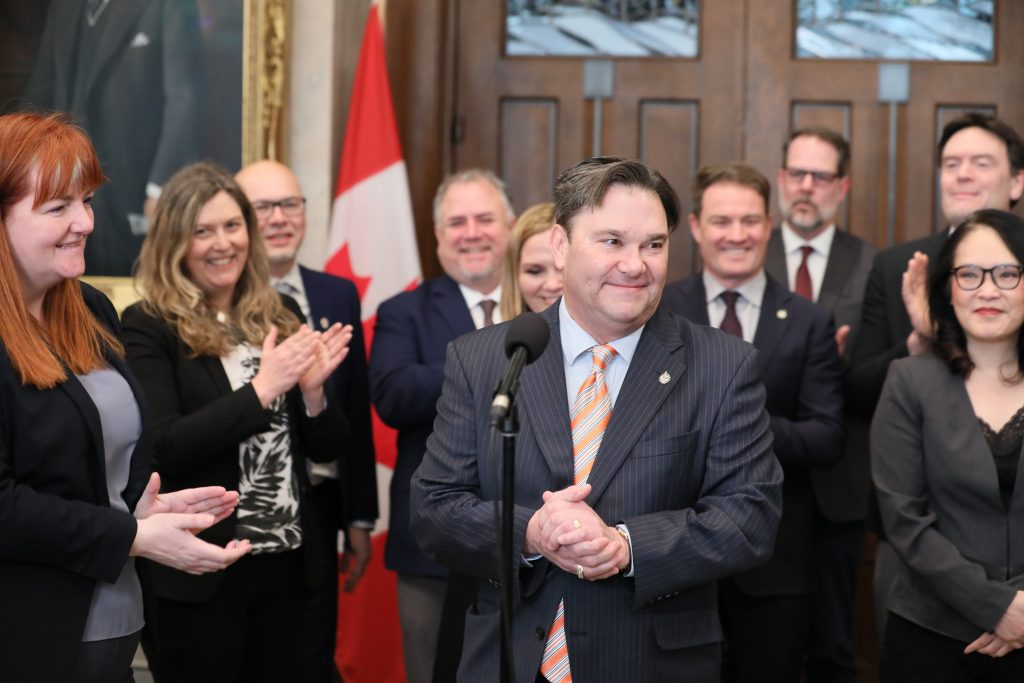 Don Davies, NDP Health Critic, celebrating the passing of Bill C-64, the Pharmacare Act, in Parliament with members of the Canadian Health Coalition on June 3, 2024. Photo: John Major.