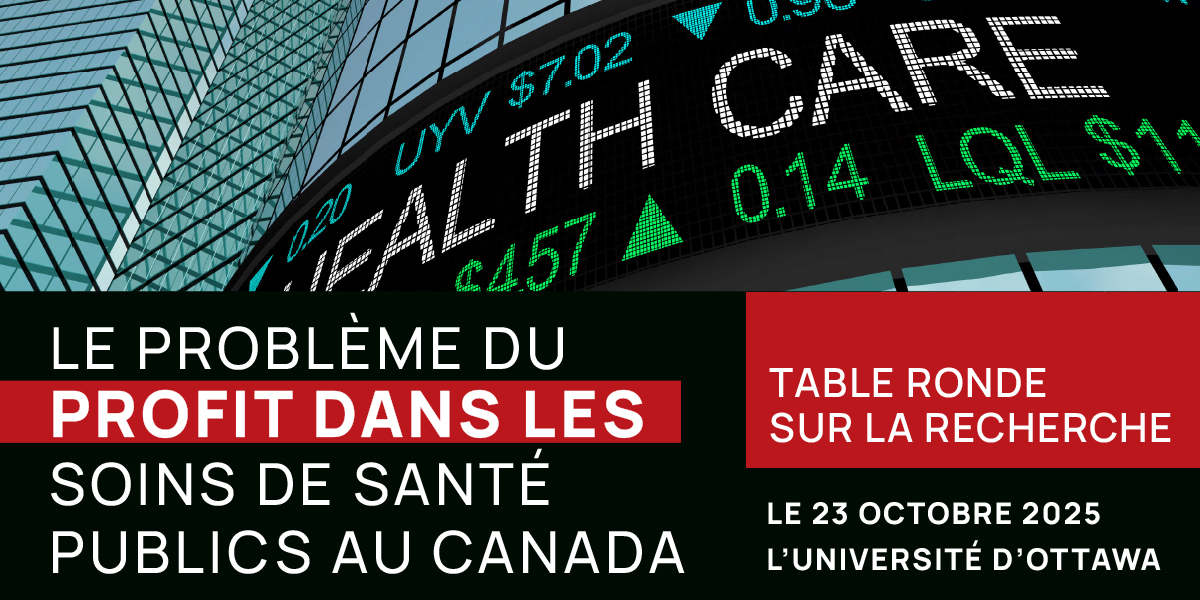 Les chercheurs qui étudient les collisions et les tensions entre le secteur public et le secteur privé du point de vue de l’équité en santé présenteront leur exposé à la table ronde de recherche sur la profitabilité des soins de santé au Canada en octobre. Les panélistes discuteront des répercussions liées à la prestation privée de soins virtuels, de soins primaires, de soins dentaires et de soins de santé génésique.