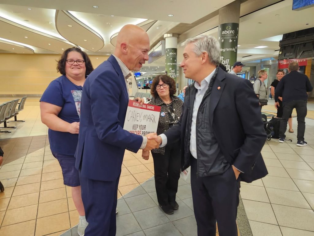 Prior to the rally, advocates gathered at Edmonton International Airport to greet arriving Liberal MPs and urge them to keep their pharmacare promise.