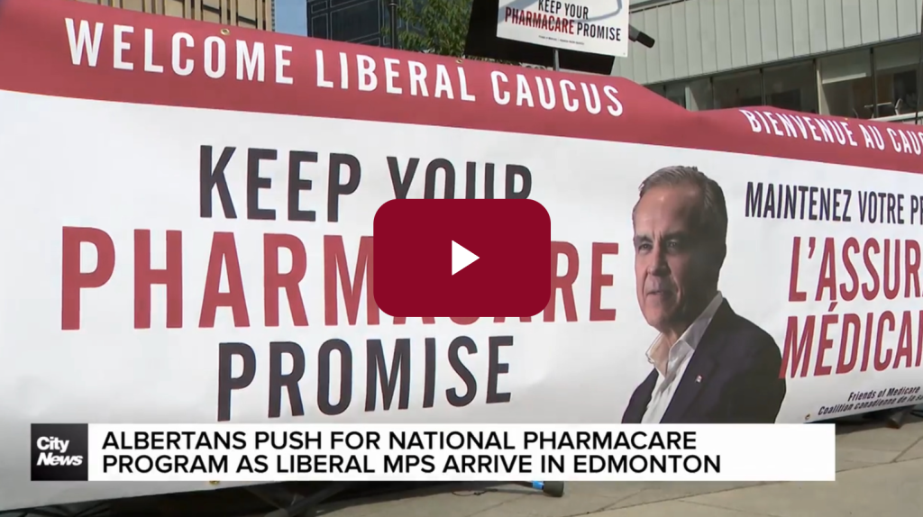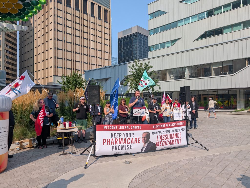 With the federal Liberal caucus meeting for their pre-session retreat in Edmonton this week, the Canadian Health Coalition joined Friends of Medicare and allies from Alberta and across Canada for a rally on Tuesday, September 9, calling on the federal government to keep its promise to implement and expand a national pharmacare plan.